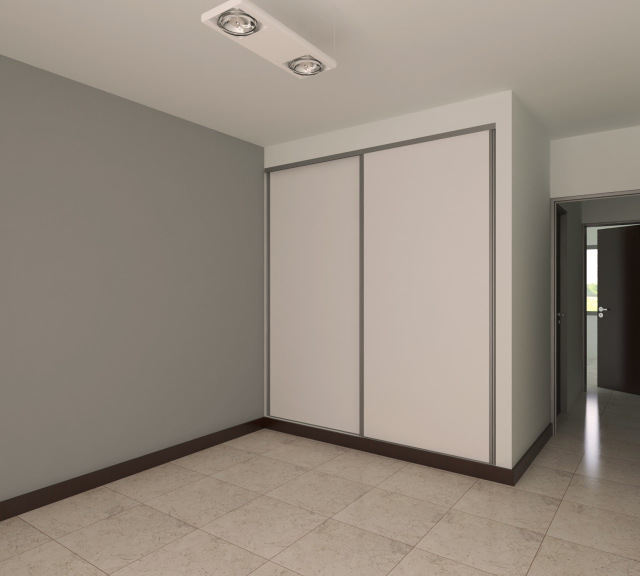 Instalación eléctrica y de desagües prevista para la colocación aires acondicionados en estares dormitorios.